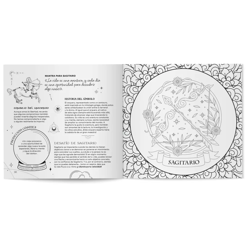 Un libro donde el arte y la astrología se entrelazan: con los 12 signos del zodíaco para pintar. También incluye las características de cada signo, la historia de sus símbolos, un mantra, una predicción cósmica, las compatibilidades entre signos y mucho más.