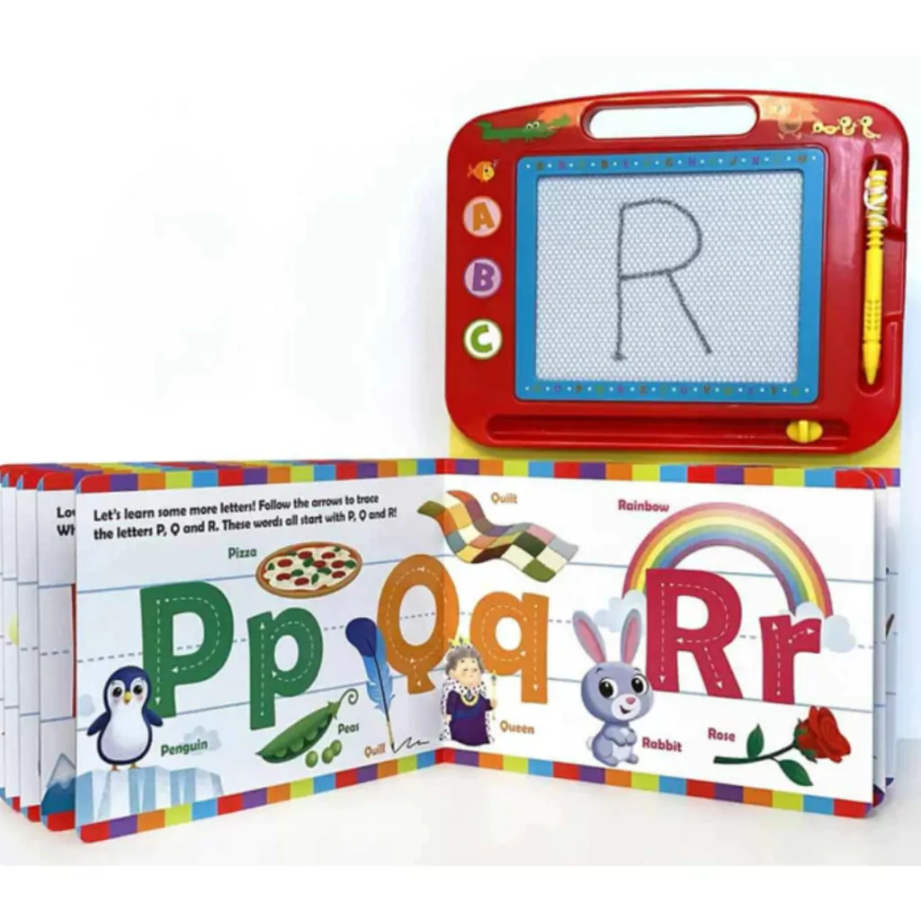 Aprende a escribir y dibujar letras, números y una multitud de objetos, ¡todo en compañía de caras familiares! Esta colección ofrece una experiencia creativa que incluye una historia divertida, instrucciones paso a paso, un bolígrafo magnético y un bloc de dibujo magnético borrable que se puede utilizar una y otra vez.